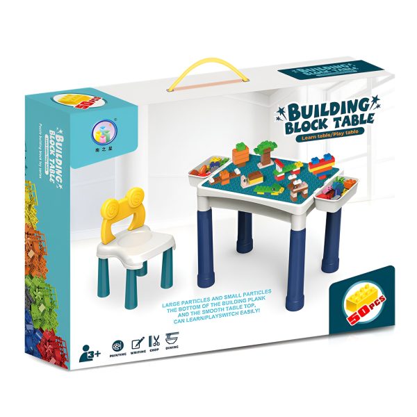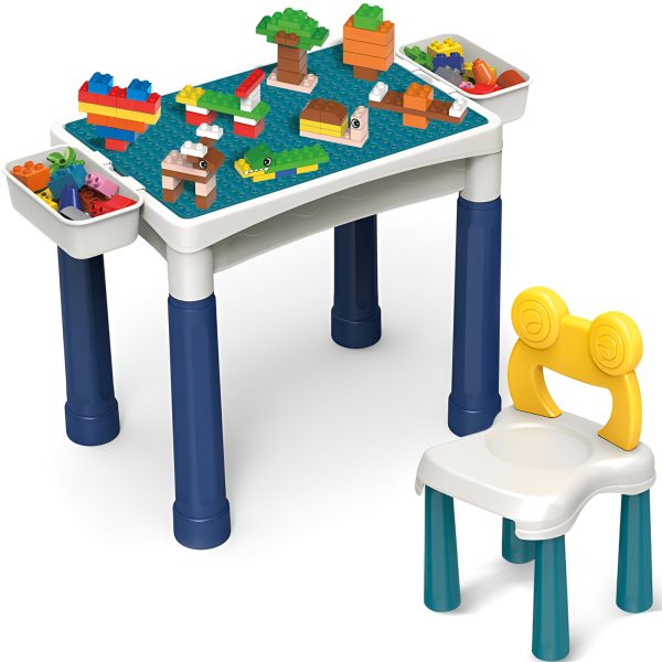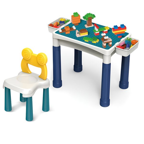 The 2-in-1 Blocks and Drawing Table offers a versatile play space where kids can build creative structures and switch to drawing or writing on the flat surface. It helps develop imagination, fine motor skills, and keeps playtime organized.